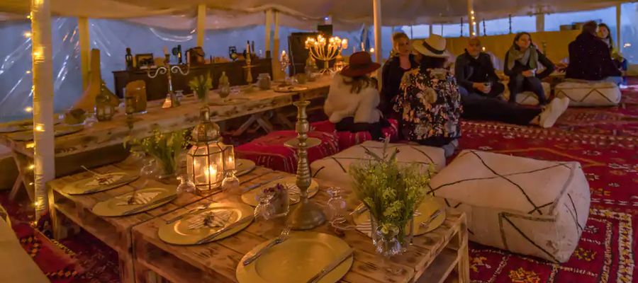 Installez-vous sous une tente nomade ou autour du feu de camp pour savourer les vrais délices de la cuisine marocaine dans une atmosphère presque unique.