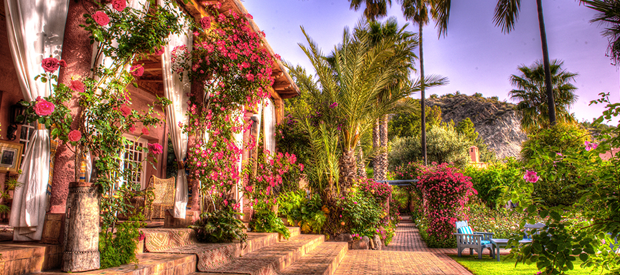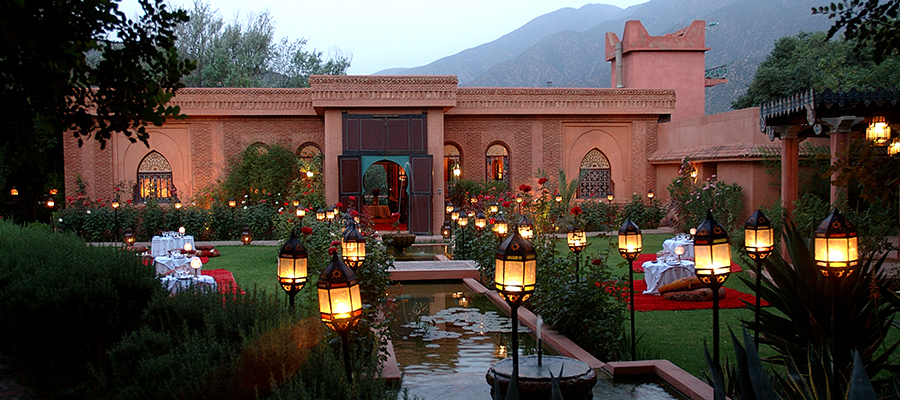 Située entre les fascinants domaines de Ouirgane, à environ une heure de route de Marrakech, La Roseraie est une prestigieuse adresse de l’Atlas, bâtie en parfaite discrétion et harmonie, rien que pour plaire aux amateurs de la nature et des paysages montagneux.