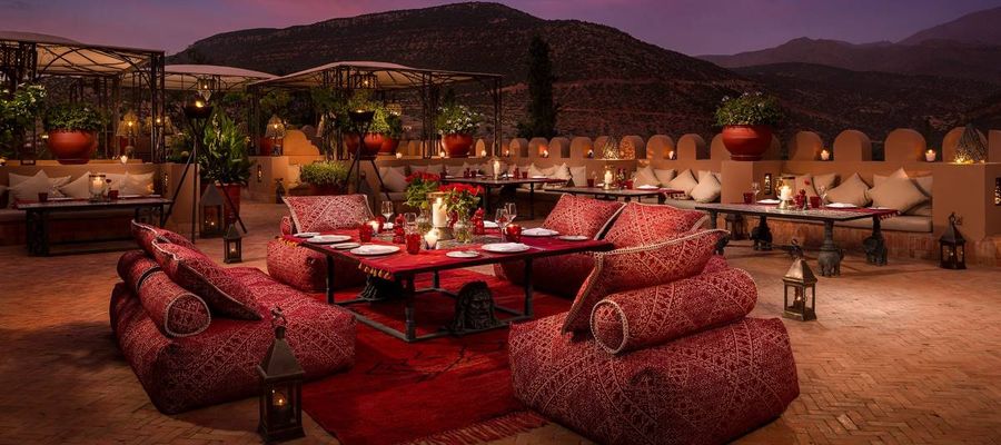Cette propriété de charme située à environ une heure de route de Marrakech, à proximité du petit village pittoresque d’Asni, propose une délicieuse cuisine marocaine et internationale, qui combine raffinement toutes les saveurs et les produits de terroir du Maroc, en accompagnement d’une sélection précieuse de vins.