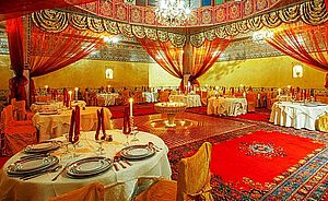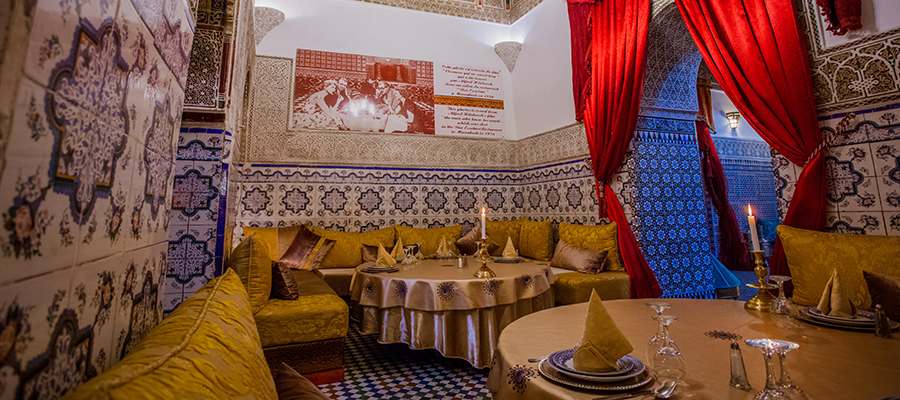 Le restaurant vous accueille dans plusieurs salles de restauration : le salon Kdim, le salon royal, le salon Marjane et le salon Bahja.