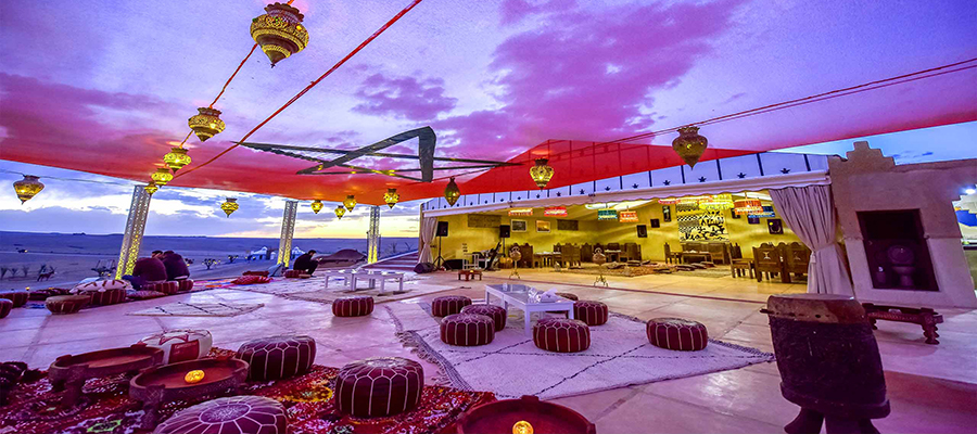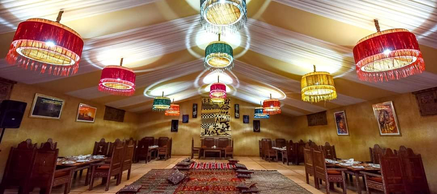 Ce restaurant bivouac installé confortablement au sommet d’une colline du désert, propose une sélection spectaculaire de plats marocains avec quelques spécialités internationales d'une extrême délicatesse.